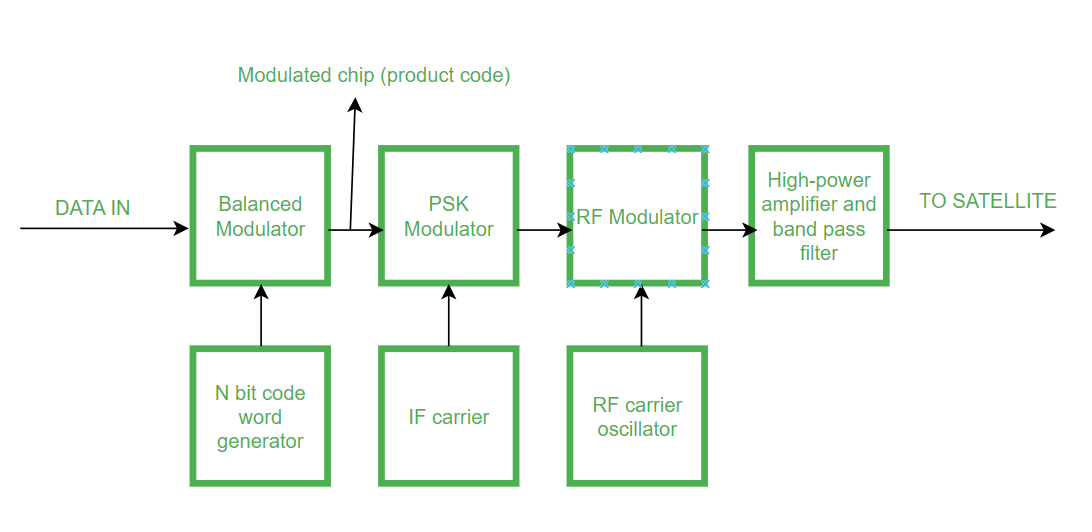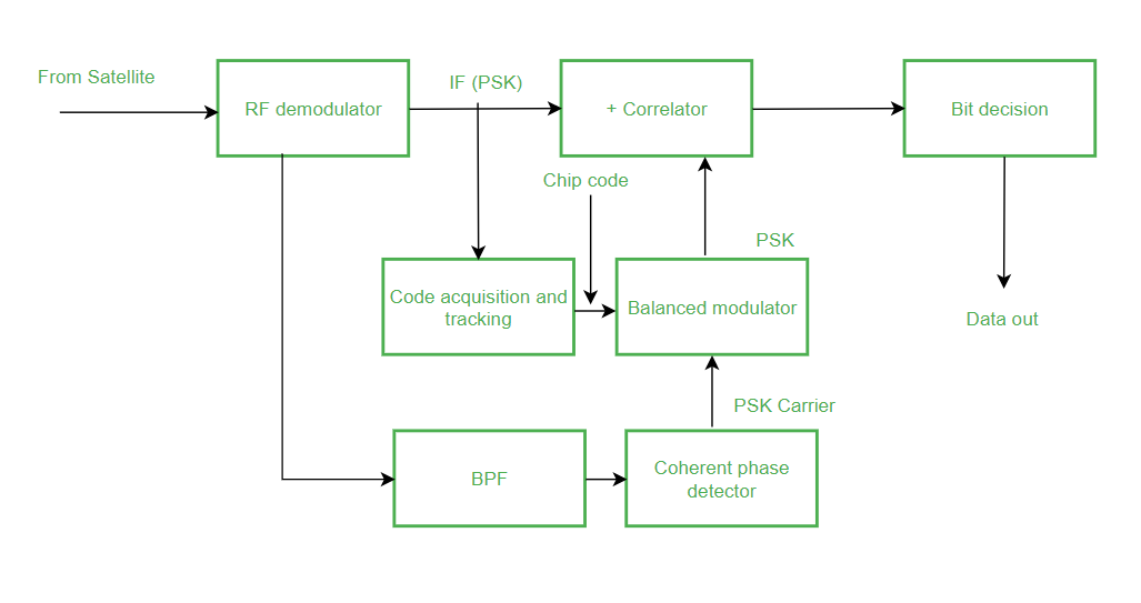 - 然后,被恢复的芯片与恢复的PSK载波进行相乘,从而生成出包含PSK载波和芯片编码的PSK调制信号。