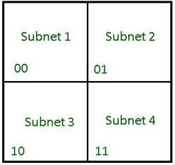 图 –地址空间被划分为4个大小相等的子网。 解决这个问题的方法有两种:方法1:- 要找到首地址,需要注意的是,前26位与给定的地址是相同的,因为这些位都是固定的。如上所述,接下来的2位也是固定的。