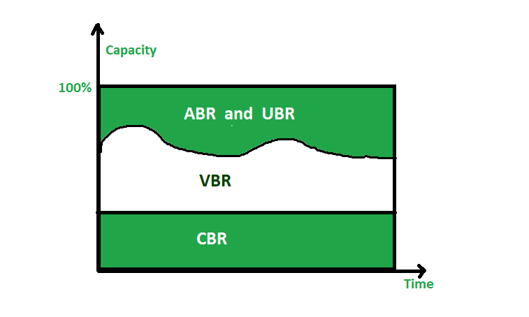 - (ii) 非实时传输模式(VBR-NRT):那些不需要实时传输服务的用户,但希望利用压缩技术来创建可变比特率的数据流的用户,可以使用VBR-NRT服务类。