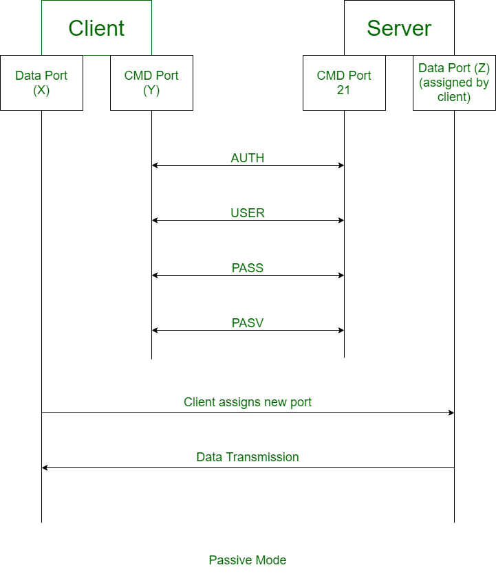 | 在主动式FTP中,客户端负责建立命令通道,而服务器则负责建立数据通道。 | 在被动FTP模式中,无论是命令通道还是数据通道,都是由客户端来建立的。 |