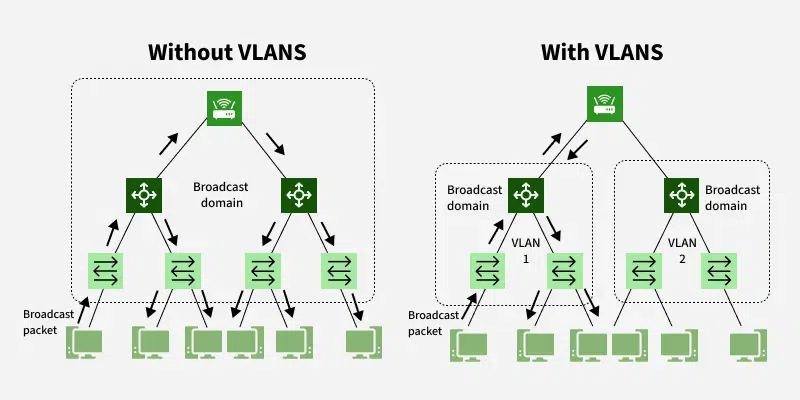 VLAN只是一种网络解决方案,它可以将物理局域网划分为多个较小的逻辑网络。这些逻辑网络各自构成独立的广播域。由于存在较少的拥塞情况,网络的性能会得到提升;同时,由于流量被隔离,网络的安全性也会得到提高。此外,VLAN还提供了灵活性,因为多个逻辑网络可以在相同的物理基础设施上共存,从而降低了与路由器相关的成本。