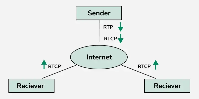 实时传输协议(RTP)它只允许传输那种能够将数据从源端传输到目的端的消息。不过,在某些情况下,我们可能需要使用其他类型的消息来传递信息。这些消息可以用来控制数据的传输和传输质量,同时还可以让接收方能够向发送方发送反馈。为此而设计的协议被称为……实时传输控制协议(RTCP).