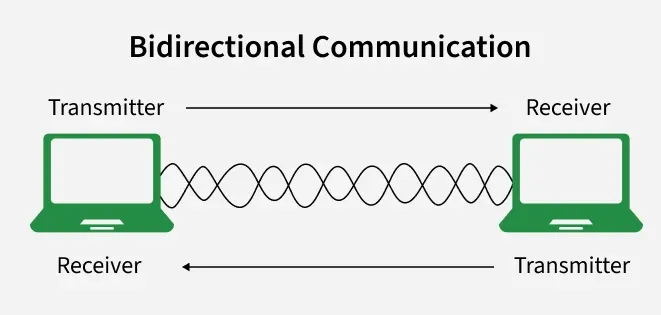 注意:虽然理论上可以实现全双工通信(即使用不同的频率进行发送和接收),但由于使用的是同一信道,典型的无线通信方式仍然属于半双工模式。