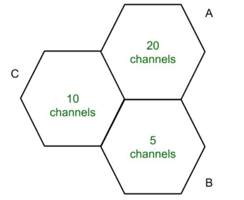 固定信道分配是一种策略,即将固定数量的信道或语音信道分配给各个小区。一旦这些信道被分配到特定的小区之后,就无法再对其进行更改。在固定信道分配中,信道的分配方式是尽可能实现最大化的效果。频率复用如果所有频道都被占用,而用户仍然进行通话的话,那么这次通话就会被阻断。Borrowing Channels可以解决这种问题。在这种模式下,某个小区可以从其他小区借用频道来使用。