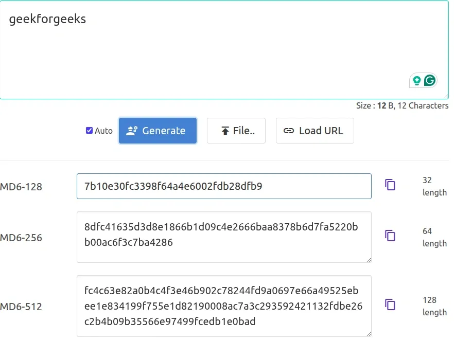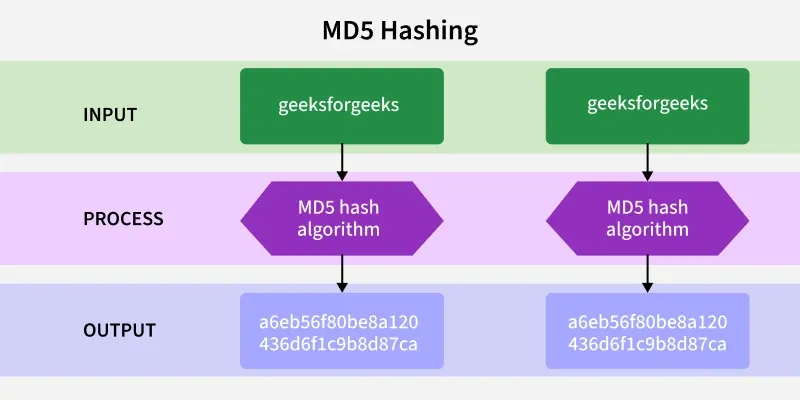 - MD5可以将任意大小的输入数据转换为128位的哈希值(即一个由32个字符组成的十六进制数)。