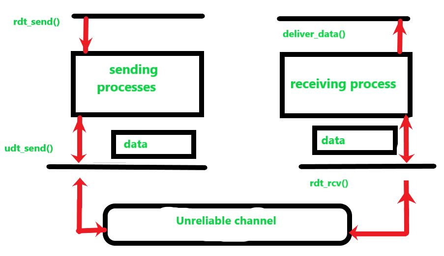 传输层协议是分层架构中的核心组成部分,它们负责实现应用程序之间逻辑上的通信。 这些过程利用了逻辑通信方式,将数据从传输层传输到网络层。这种数据传输方式必须既可靠又安全。 数据是以数据包的形式进行传输的,但问题在于数据的可靠传输方面存在一些问题。 数据传输问题不仅发生在传输层,也发生在应用层以及链路层。 这个问题发生在可靠的服務运行在不可靠的服務之上的情况下。例如,TCP(传输控制协议)是一种可靠的数据传输协议,但它实际上是在不可靠的互联网协议之上实现的。也就是说,互联网协议本身就是一个端到端的网络层协议。