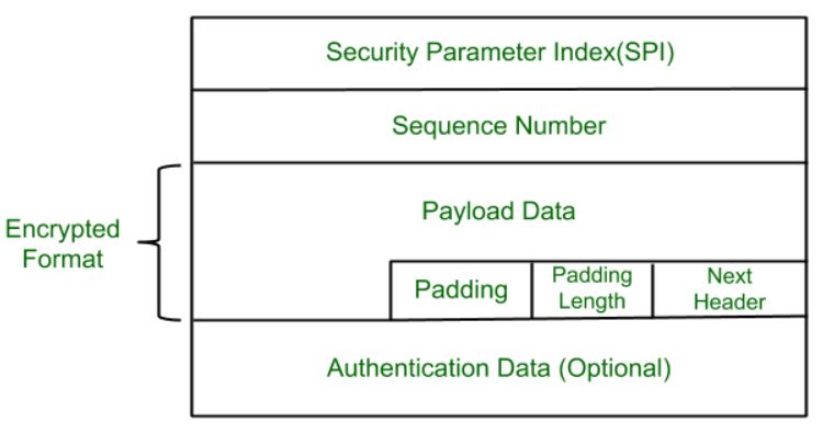- 认证数据在 ESP 协议的数据包格式中,这个字段是可选的。