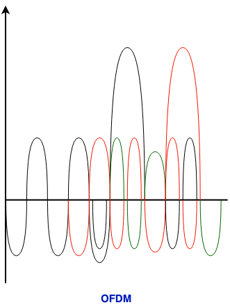 正交频分复用(Orthogonal Frequency Division Multiplexing, OFDM):这也是在模拟系统中所使用的多路复用技术。在OFDM中,不需要使用保护带,因此OFDM的频谱效率较高,这与FDM相比更为优越。在OFDM中,单个数据源可以分配给所有的子信道上。