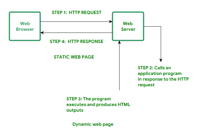 | 静态网页是用诸如HTML、JavaScript、CSS等语言编写的。 | 动态网页是使用诸如 CGI、AJAX、ASP、ASP.NET 等语言来编写的。 |