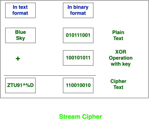 - 连续加密:这些数据是以连续不断的流形式进行加密的,每次处理一个比特或字节。