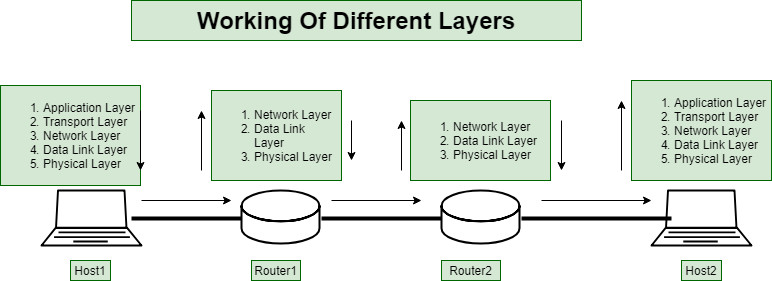 通常情况下,主机或计算机拥有从应用层到物理层的全部层次结构;而路由器则只拥有网络层、数据链路层以及物理层。