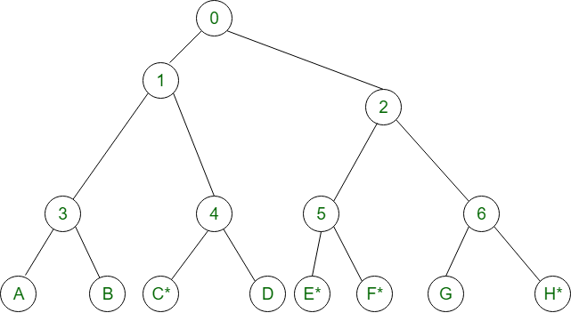 自适应树路径协议,图1.3槽位0C*、E*、F*、H*(节点0下的所有节点都可以尝试发送数据)。存在冲突。