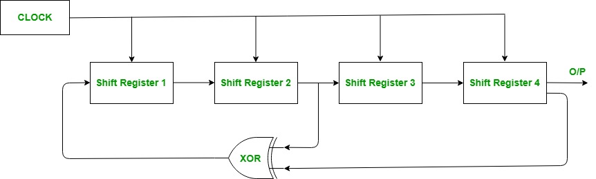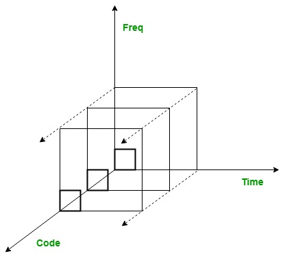 窄带宽信号与被称为“伪噪声码序列”的宽带宽信号进行相乘。每个用户都拥有自己的伪噪声码序列,这些伪噪声码序列彼此正交。这些伪噪声码序列的自相关最大,而互相关为零。由于这种特性,它们会在很长的时间间隔后重复出现,因此看起来像是随机产生的。伪噪声码序列是通过线性反馈移位寄存器来生成的。