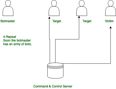 起初,那些想要成为机器人控制者的人会先找到目标系统(这里的“目标系统”指的是那些存在漏洞的系统)。然后,他们利用常见的社会工程学手段,比如网络钓鱼、点击欺诈等方法来将小型可执行文件植入到这些系统中。 代码中包含了一个小的元素,因此即使有后台进程在运行的情况下,这个元素也是不可见的。 一个天真无邪的用户甚至不会意识到,自己的系统已经成为了某个机器人军队的一部分。 在感染之后,这个机器人会寻找一个可以与其“主人”进行通信的通道。 “Mostly Channel”(命令与控制频道)使用的是现有的协议来发送命令,并接收来自主节点的更新信息。因此,如果有人试图查看该频道的通信行为,那么要理解其中的情况将会相当困难。 Botmaster用于编写脚本,以便在不同的操作系统上运行可执行文件。