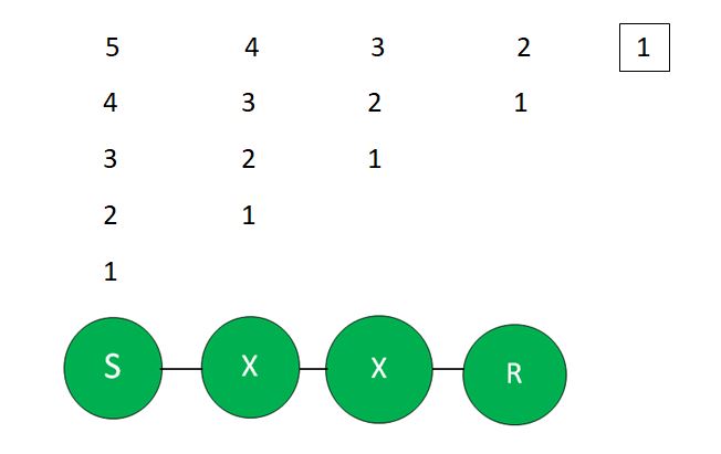 Time taken by 1st Packet, = No of Hops * Transmission delay = 3*0.3 = 0.9 msTime taken by the remaining 4 Packets = 4*Transmission delay = 4*0.3 = 1.2 msTotal Time Taken, = 0.9+1.2 = 2.1 ms