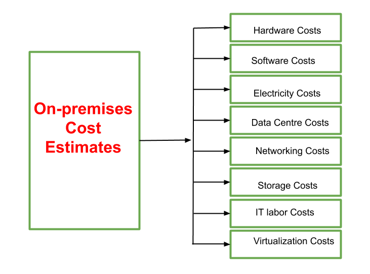 在本地环境中,虚拟化技术的成本估算共有八种类型,具体如下所示: