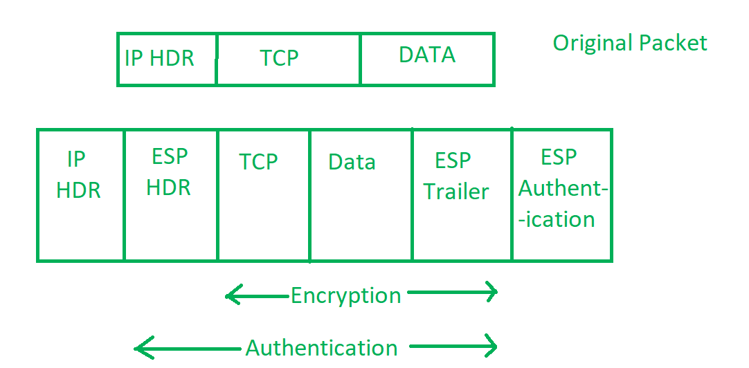 封装安全载荷(ESP):它提供了数据完整性、加密、身份验证以及防重放功能。此外,它还为负载提供了身份验证功能。