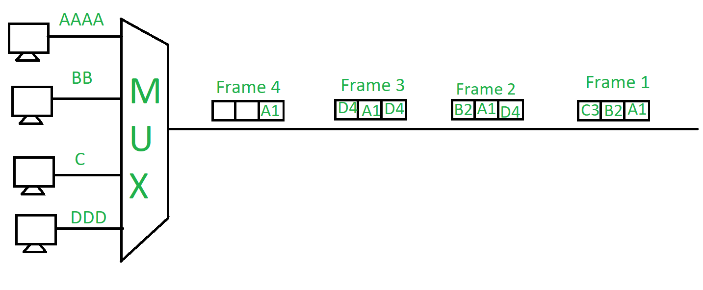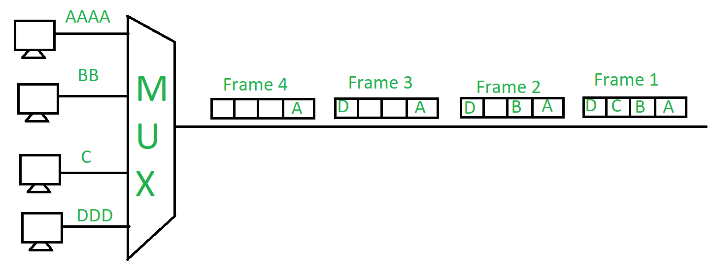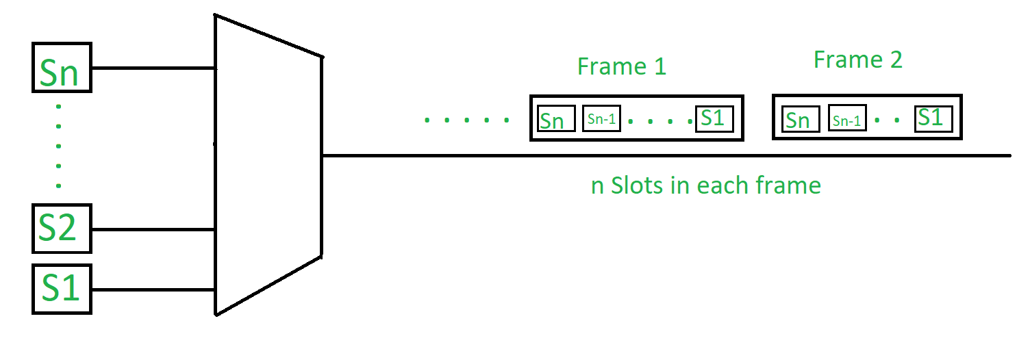 这些时间槽是预先分配并固定的。即使源设备此时还没有准备好提供数据,该时间槽仍然会被占用。在这种情况下,该时间槽会被空置下来,用于多路复用数字化语音流。