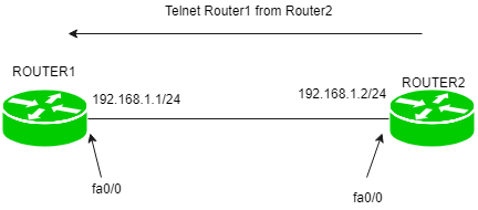 Router2#telnet 192.168.1.1Router1>