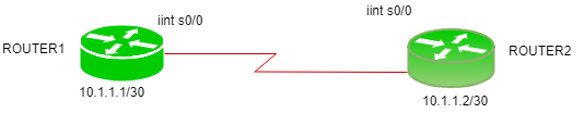 这里有一个由2台路由器组成的小型网络,分别名为Router1和Router2。Router1的IP地址为10.1.1.1/30,位于s0/0接口上;而Router2的IP地址为10.1.1.2/30,同样位于s0/0接口上。需要注意的是,默认情况下,Cisco路由器上启用了HDLC协议。因此,首先需要将封装方式更改为PPP协议。