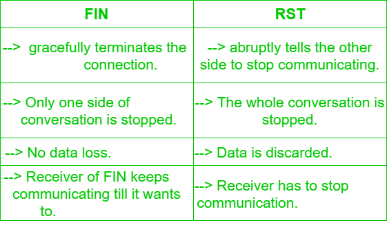 完成操作 (FIN) 与重置操作 (RST) –