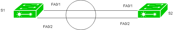 S2(config)# interface fa0/1S2(config-if)# channel-group 1 mode desirable S2(config)# interface fa0/2S2(config-if)# channel-group 1 mode desirable S2(config)# interface port-channel 1S2(config-if)# switchport trunk encapsulation dot1qS2(config-if)# switchport mode trunk