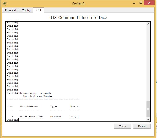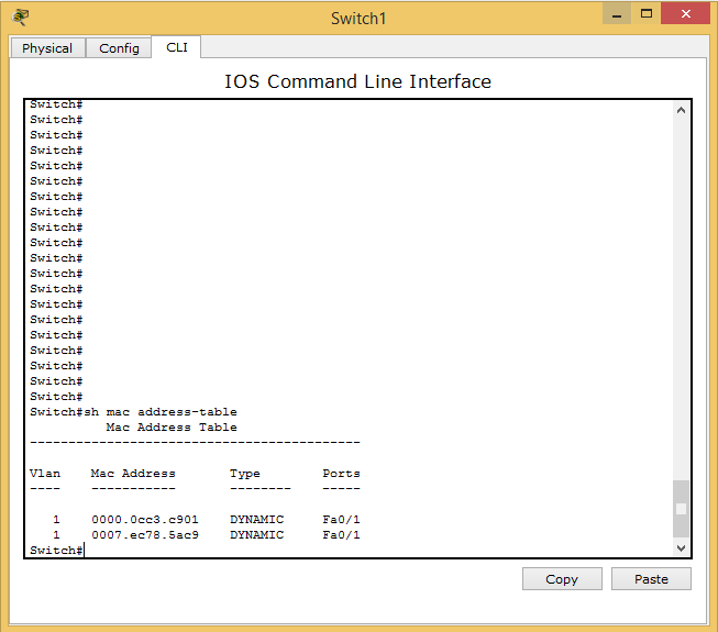 - 类型/种类它告诉我们,该交换机是如何得知主机的MAC地址的——也就是说,该地址是静态的还是动态的。如果条目是手动添加的,那么该地址就是静态的;否则,该地址就是动态的。