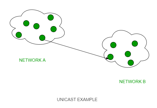 这种信息传输方式在只有单个发送者和接收者参与的情况下非常有用。简而言之,可以将其视为一对一的传输方式。例如,如果网络中有设备,其IP地址为10.1.2.0,希望将流量数据发送给另一个网络中IP地址为20.12.4.2的设备,那么就会采用单播传输方式。这其实是网络上最常见的数据传输方式。