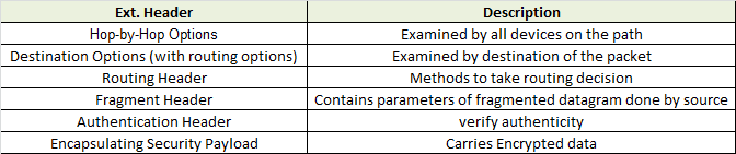 扩展头的不同类型
