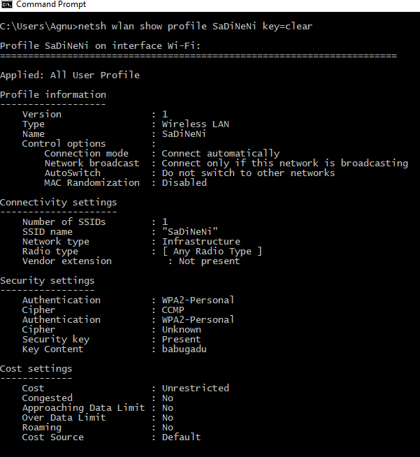我们可以通过使用Windows的CMD命令来查看这些WLAN配置文件。只需输入相应的命令,就可以得知所有已连接的网络以及它们的密码。这些命令还可以揭示那些目前未连接但曾经连接过的网络的Wi-Fi密码。因此,无论你处于离线状态还是连接着其他网络,这些命令都能发挥作用。