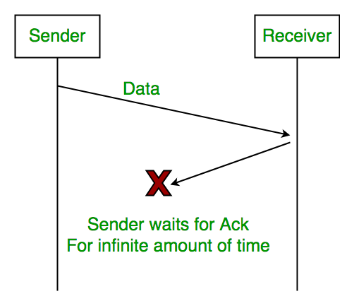 如果发送方发送了一个帧,但该帧在网络中丢失了,那么接收方就不会收到这个帧,因此也不会发送确认消息。不过,发送方仍然可以继续进行后续的操作。不必等待太久。它开始了。计时器在发送完该帧之后,如果超时时间到期之前没有收到ACK响应,那么发送方就需要重新发送同一帧。
