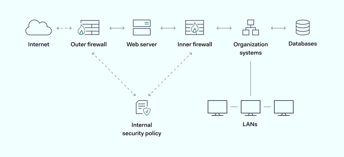 - 不同类型的防火墙,从数据包过滤器到下一代防火墙,所提供的检查和保护功能也有所不同。