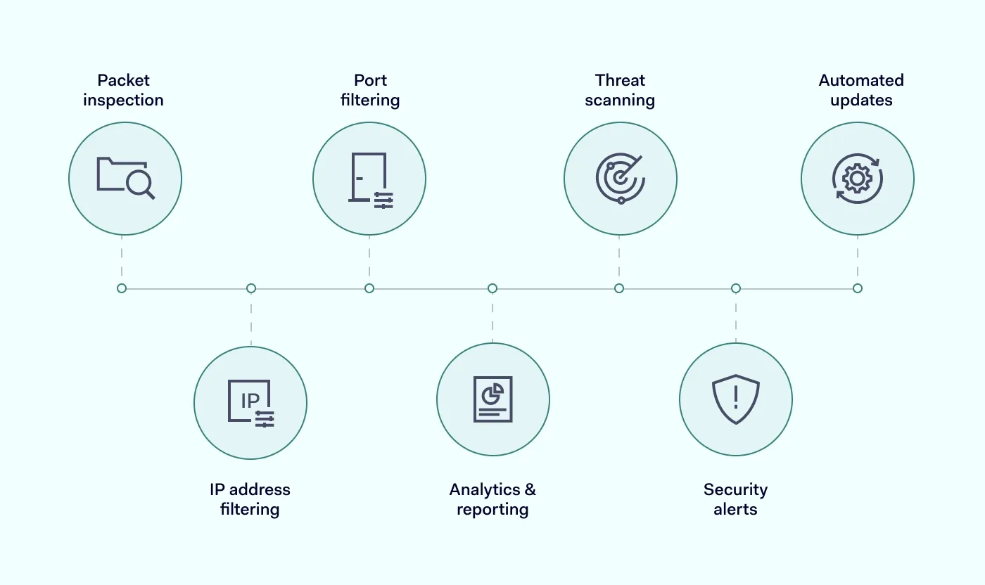 任何软件防火墙的核心目标,都是保护网络资产免受恶意流量的侵害。为了实现这一目标,需要多种功能的协同作用。这些功能应该存在于大多数现代防火墙软件中。