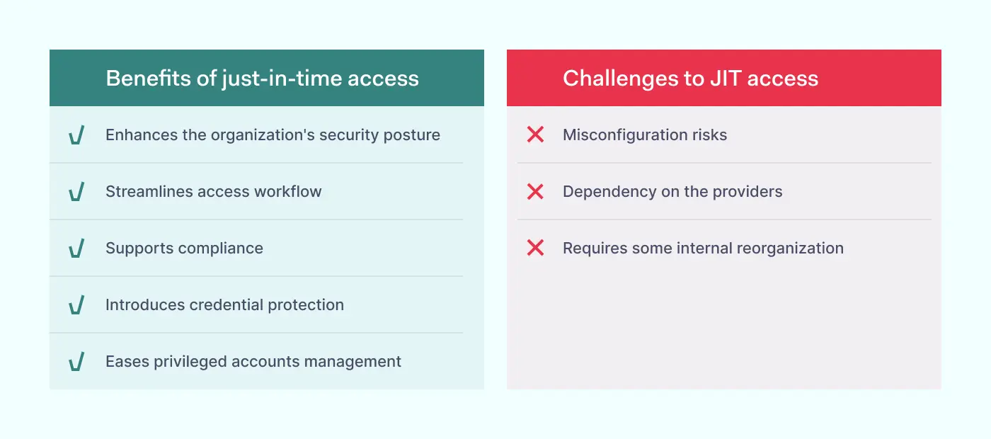 虽然按需访问是一种很好的解决方案,它有助于企业严格控制用户的权限,但JIT也并非没有缺点。可能会出现一些错误,而且这种管理方式也并不万无一失。