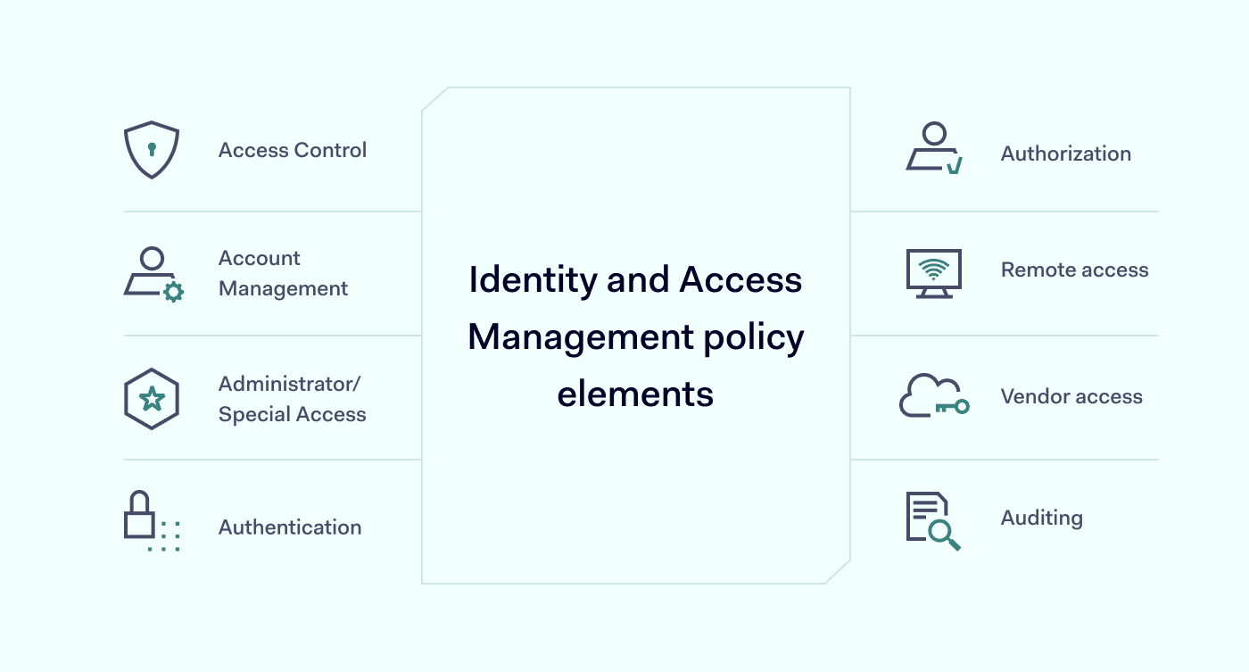 - 身份与访问管理政策。关于访问管理关键领域的具体条款。涵盖的主题可能包括:
