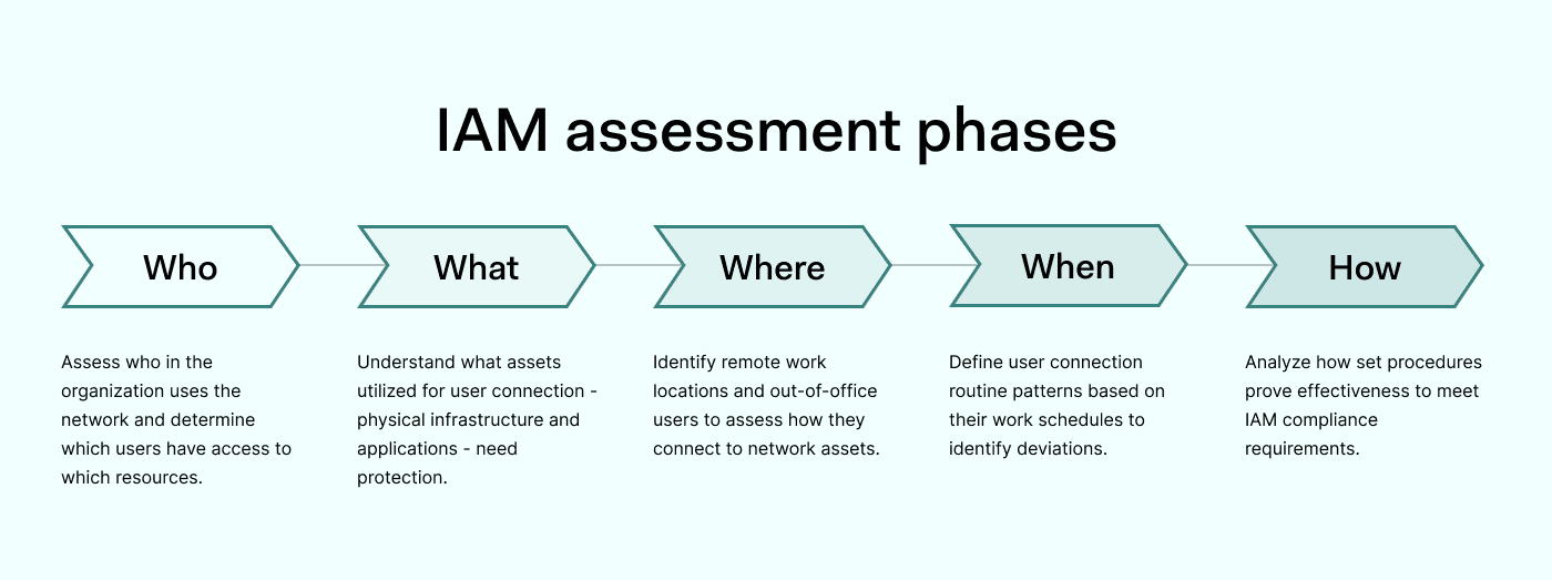 IAM评估过程可以分为五个不同的方面:谁、什么、何时、何地以及如何。让我们快速了解一下这五个方面的具体运作方式吧。
