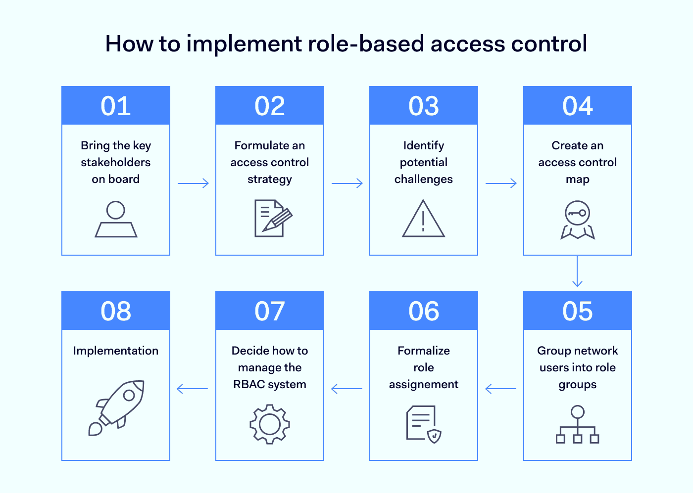 下面的流程描述了实现强大访问控制系统的典型步骤。这为RBAC系统的实施提供了一个良好的起点。