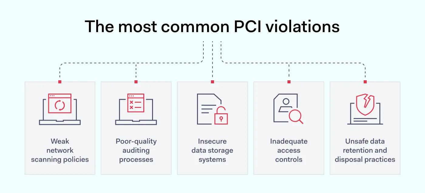 违规行为有多种形式。企业可能会以不安全的格式存储信用卡数据,或者在没有进行加密处理的情况下传输持卡人的信息。因此,受监管的机构需要了解最常见的违规行为。