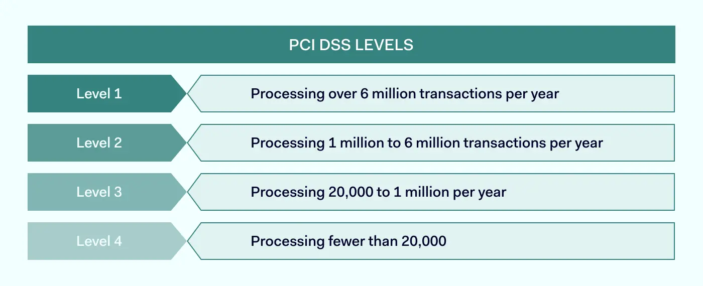 - 对于 PCI-DSS 的级别 2-4,通常需要进行问询审计。这适用于大多数处理持卡人数据的电子商务公司。规模较大的组织则可能需要更复杂的审计流程,通常需要由经过批准的审计师来进行审计。