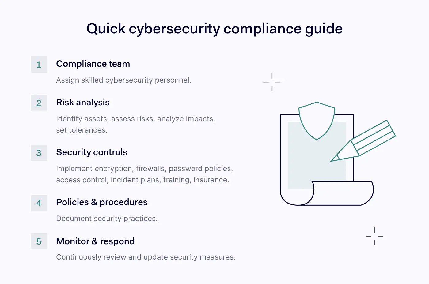 无论规模大小,每个组织都应该拥有具备评估网络安全合规性相关技能和知识的专业人员。明确的职责分配有助于维持一个与时俱进的网络安全环境,同时还能让组织能够灵活应对各种威胁和挑战。