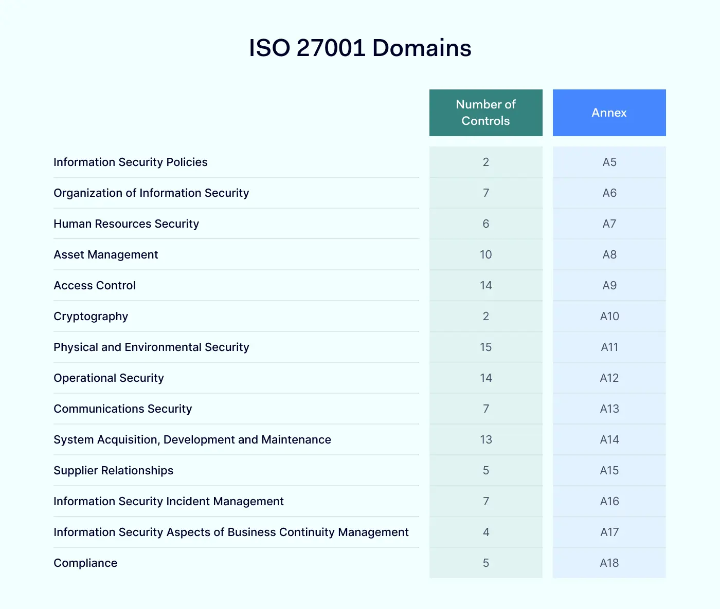 总共有93项附录A中的控制措施。根据ISO 27001标准,这些控制措施被划分为14个领域或主题。 需要进行的检查次数会定期发生变化。 企业必须了解《附件A》的内容,以便实施符合要求的安保措施。ISO 27001附录A中所规定的控制措施是什么?