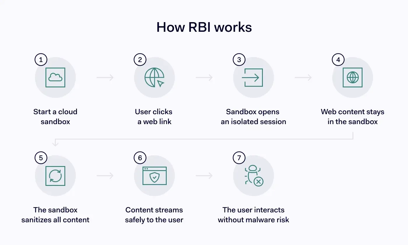 - 远程浏览器隔离技术(Remote Browser Isolation)RBI创建了一个基于云的环境,该环境与网络终端完全隔离。