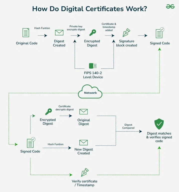 - 代码签名证书:这是验证从互联网上获得的软件或文件是否合法的必要步骤。当消费者下载软件时,软件的开发者或发行商会为这些文件签署签名,以证明它们是真实的。对于那些在外部网站上提供产品的软件公司来说,这是一种有效的手段,可以证明这些文件没有被修改过。