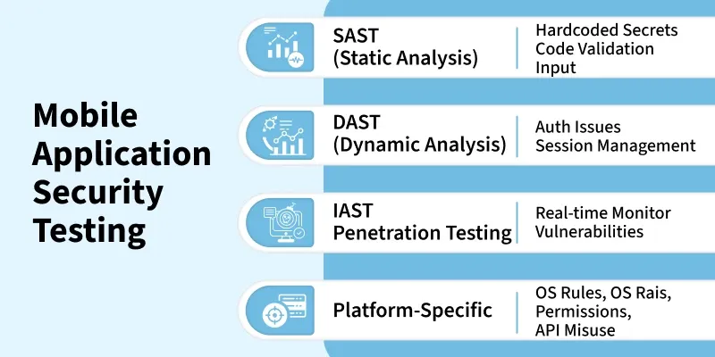 - 平台特定的测试:移动应用程序的开发是为了满足特定平台的需求,比如iOS或Android。为了评估应用程序的安全性,会进行针对特定平台的测试。这些测试会检查应用程序的安全规则、权限设置、加密机制、与特定平台相关的漏洞、潜在的安全漏洞以及其他相关问题,同时还会采用针对该平台的最佳实践来进行评估。