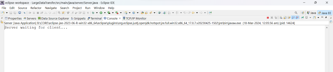 - 要启动服务器,请右键点击该服务器图标。Server.Java然后选择……运行方式/执行模式之后,进行选择。Java应用程序.