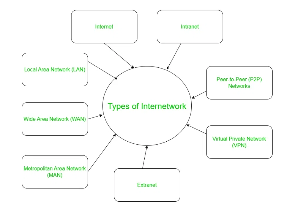 “Internetwork”是由两个不同的单词组合而成的词。中间以及“净”工作/劳动在这里,“inter”仅仅表示一种连接或联系,而“network”则指的是由相互连接的机器和系统构成的系统或网络。根据不同的标准,我们可以识别出各种不同类型的互联网应用。在本文中,我们将探讨一些最常见的互联网应用类型。大多数网络都会选择本文中提到的其中一种类型来运作。