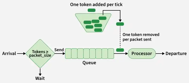 - 代币:传输数据需要获得许可;只有当有足够的令牌可用时,才能发送数据包。