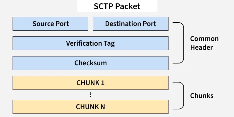 SCTP数据包主要由两部分组成:头部和负载。头部是固定的,而负载则包含不同的数据块。