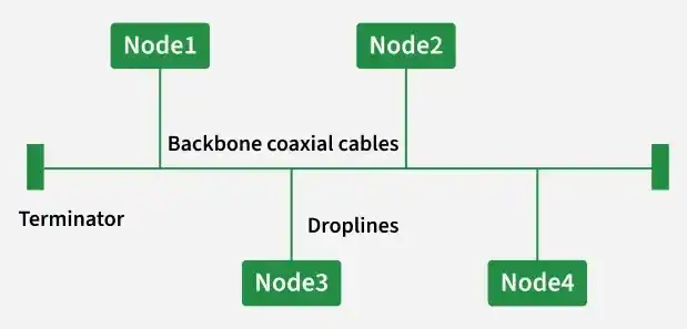 - 使用一根主干电缆即可实现连接。