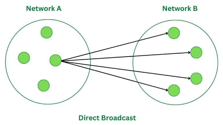 直接广播是一种传输方式,即网络中的某个节点将数据包发送给另一个网络中所有可用的节点。这种广播方式适用于另一个网络中的所有接收主机都需要相同的数据的情况。要实现直接广播,可以将接收节点的地址中所有的主机ID位都设置为1。电视网络通常使用直接广播方式来传输音频和视频内容。让我们来看一下直接广播的例子吧。